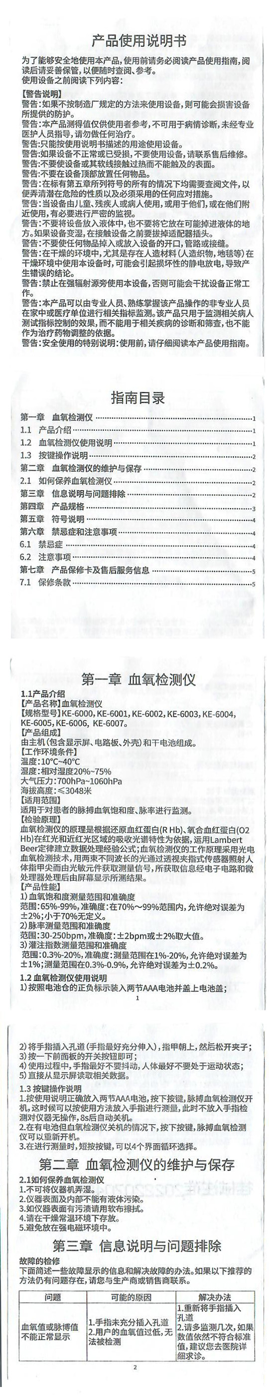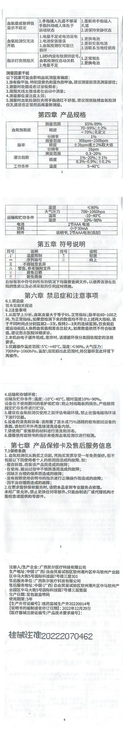 广西凯尔血氧检测仪使用说明书扫描件