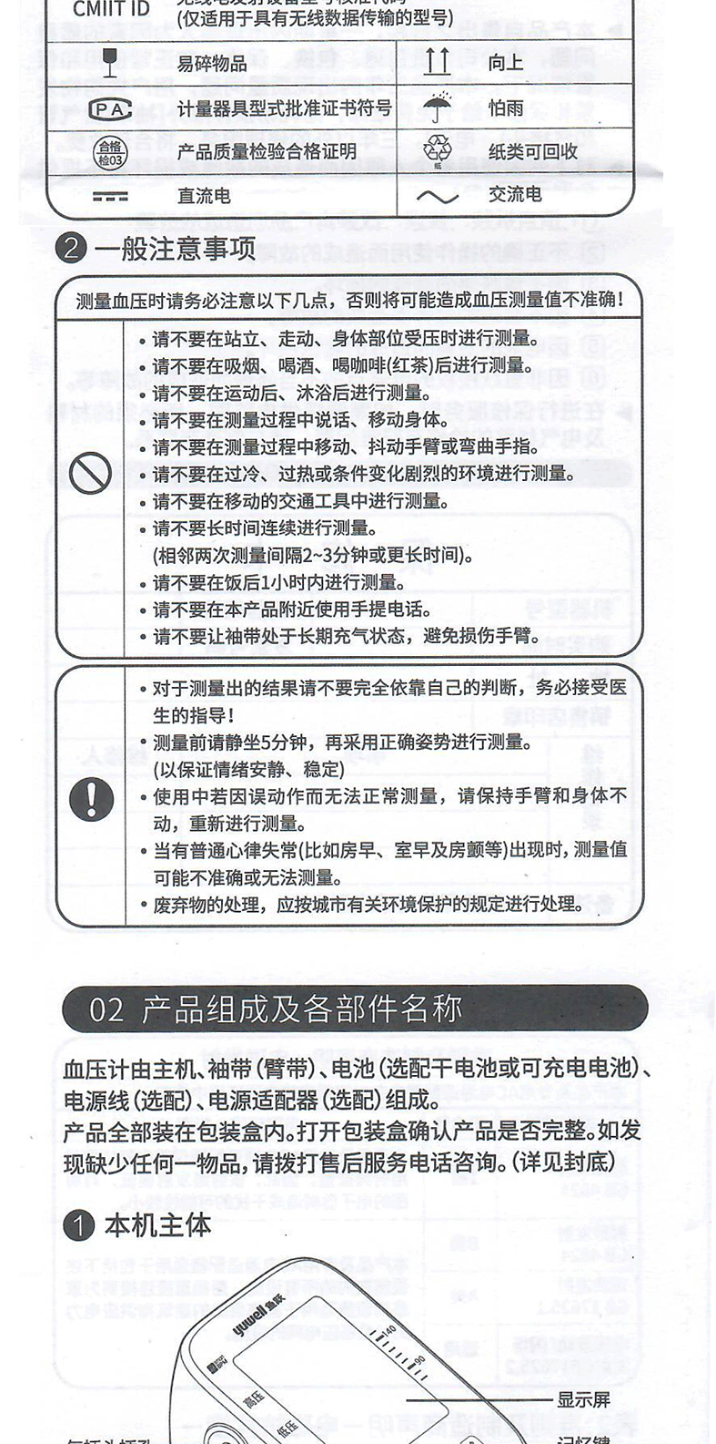 yuwell鱼跃产品使用及技术说明书