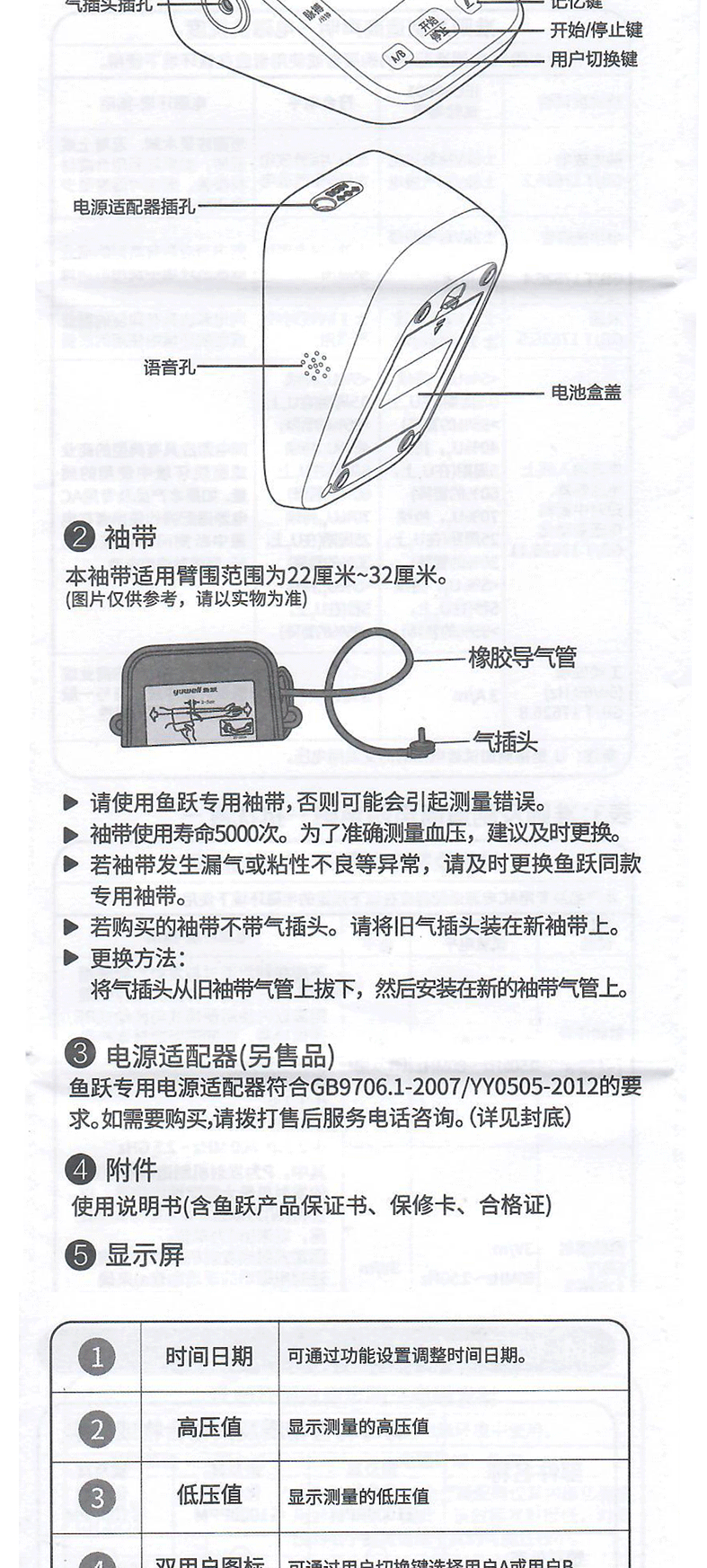 附件,使用说明书(含鱼跃产品保证书、保修卡、合格证)