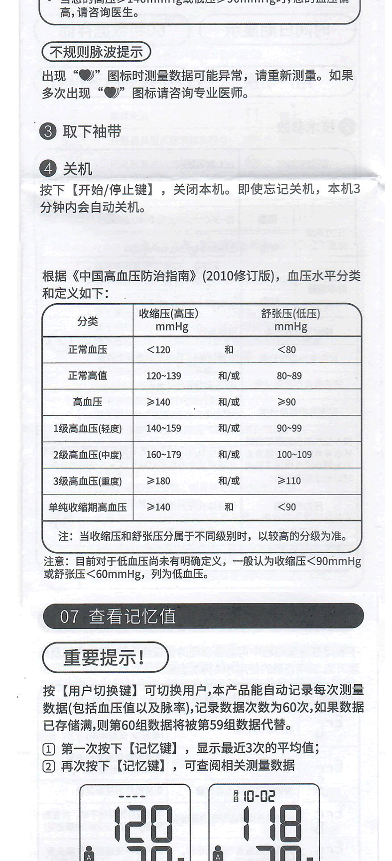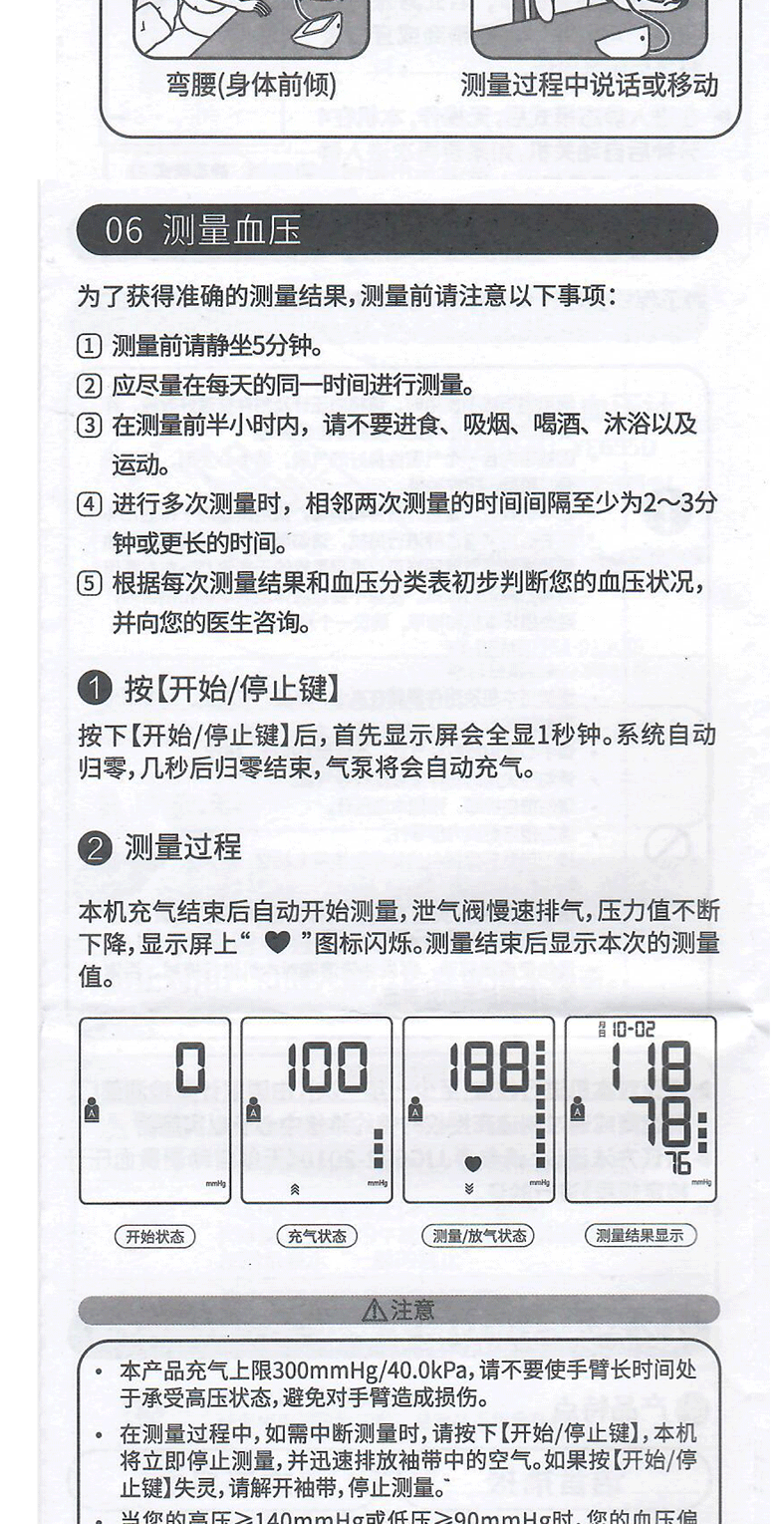 注意:任何血压测量都受被测量者的姿势以及他/她的身体状况的影响。