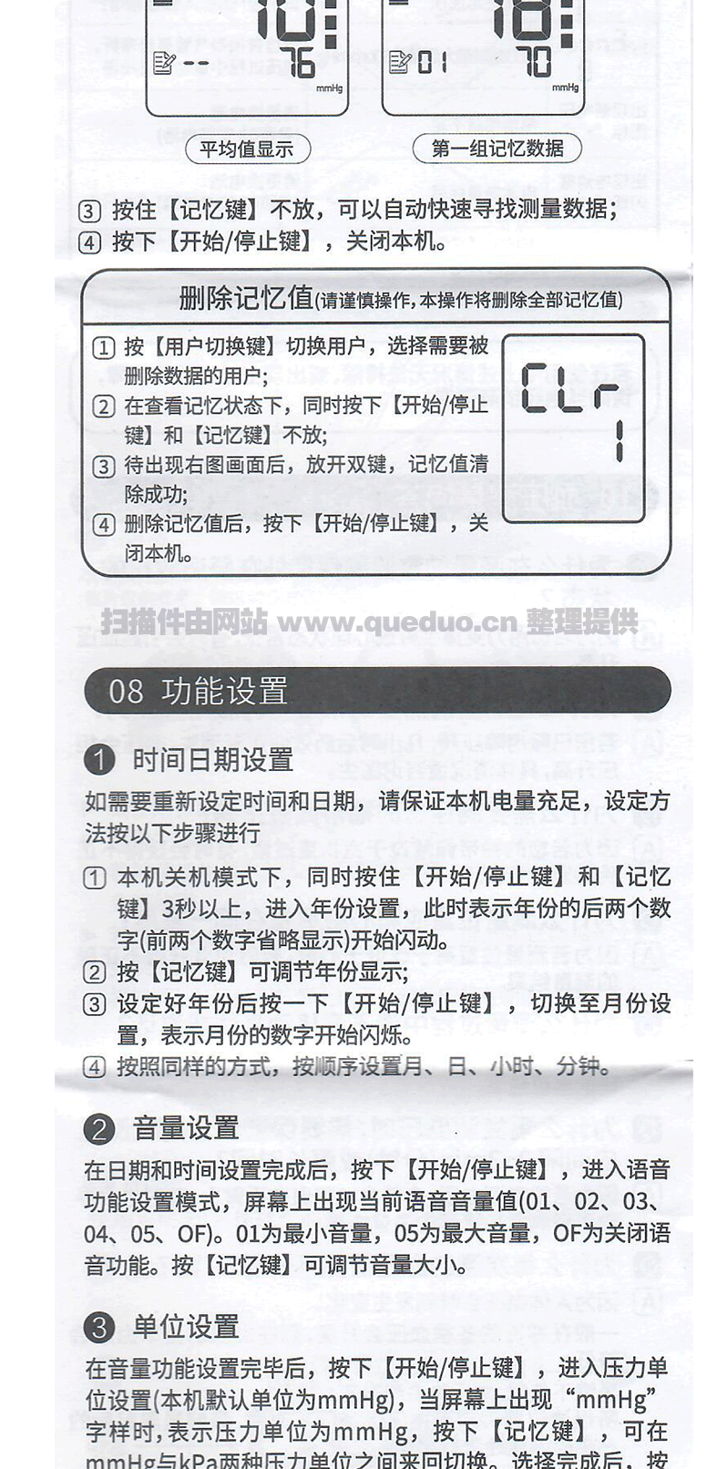显示屏气插头插孔-记忆键开始/停止键用户切换键电源适配器插孔语音孔-电池盒盖