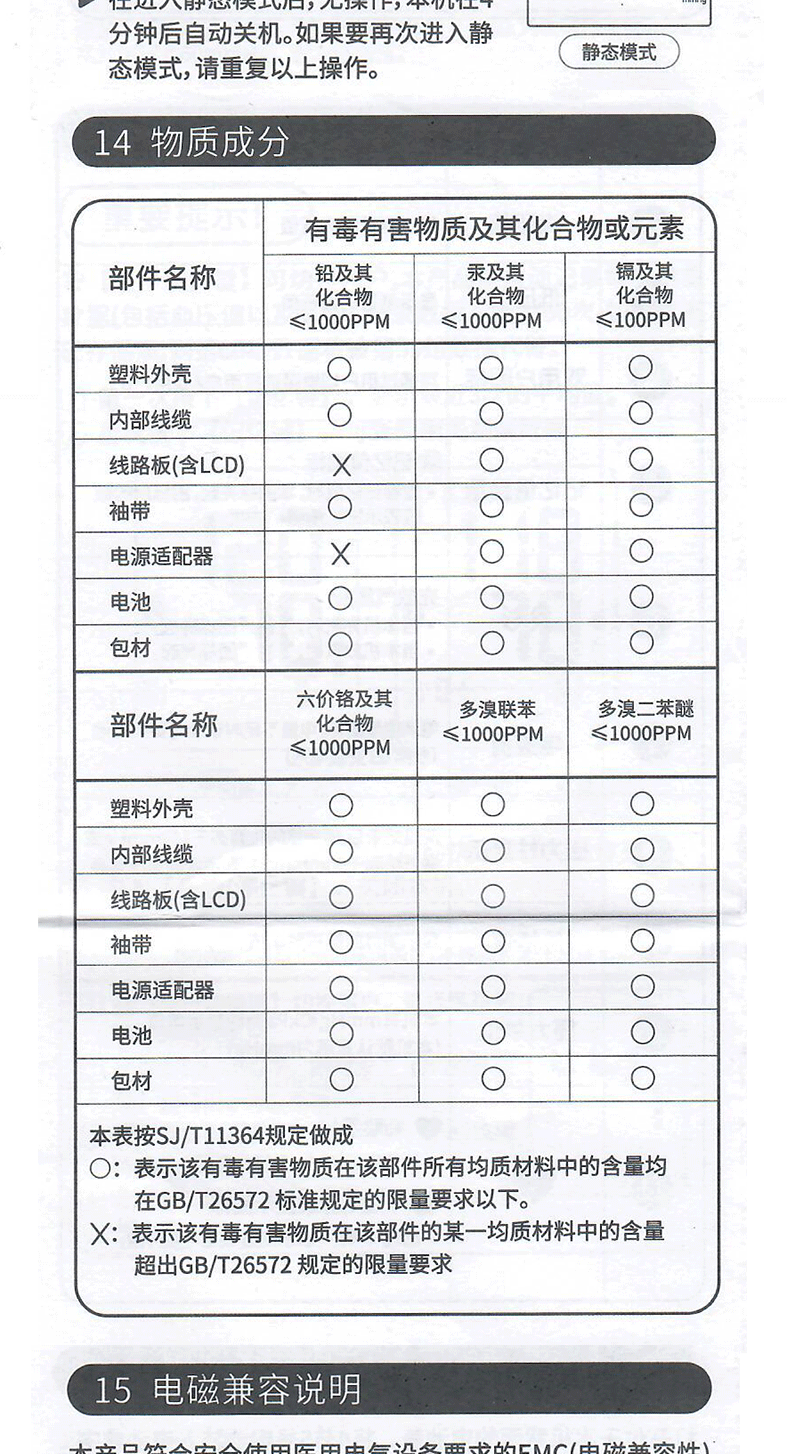 ·请不要在站立、走动、身体部位受压时进行测量。