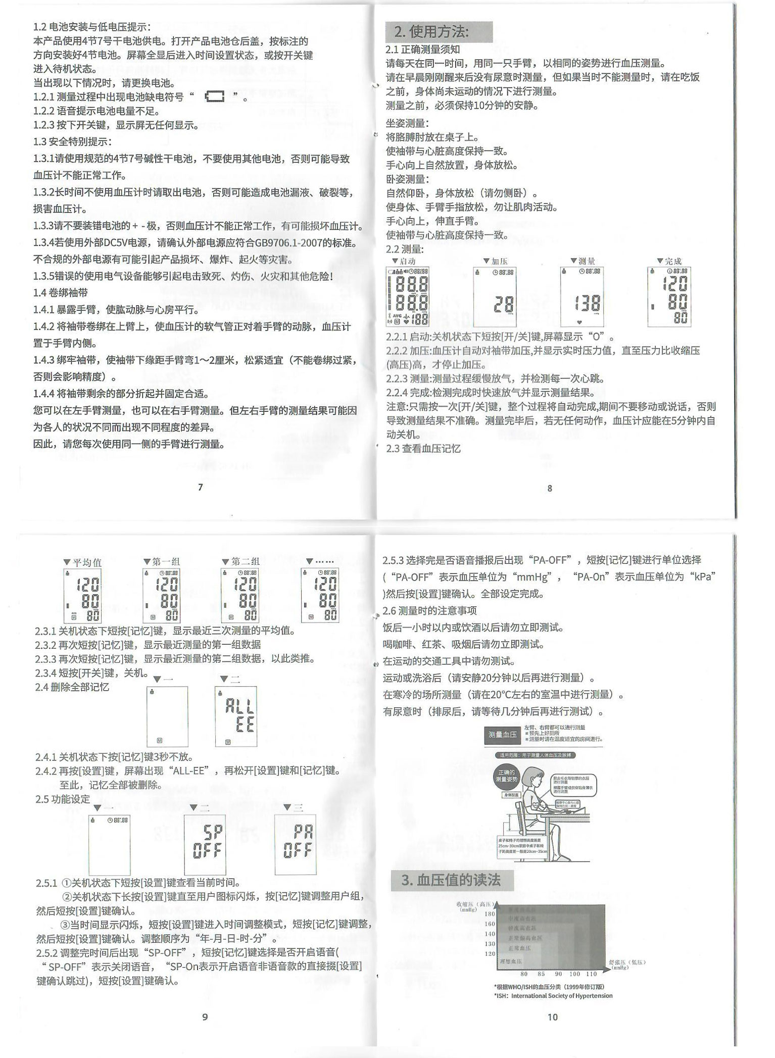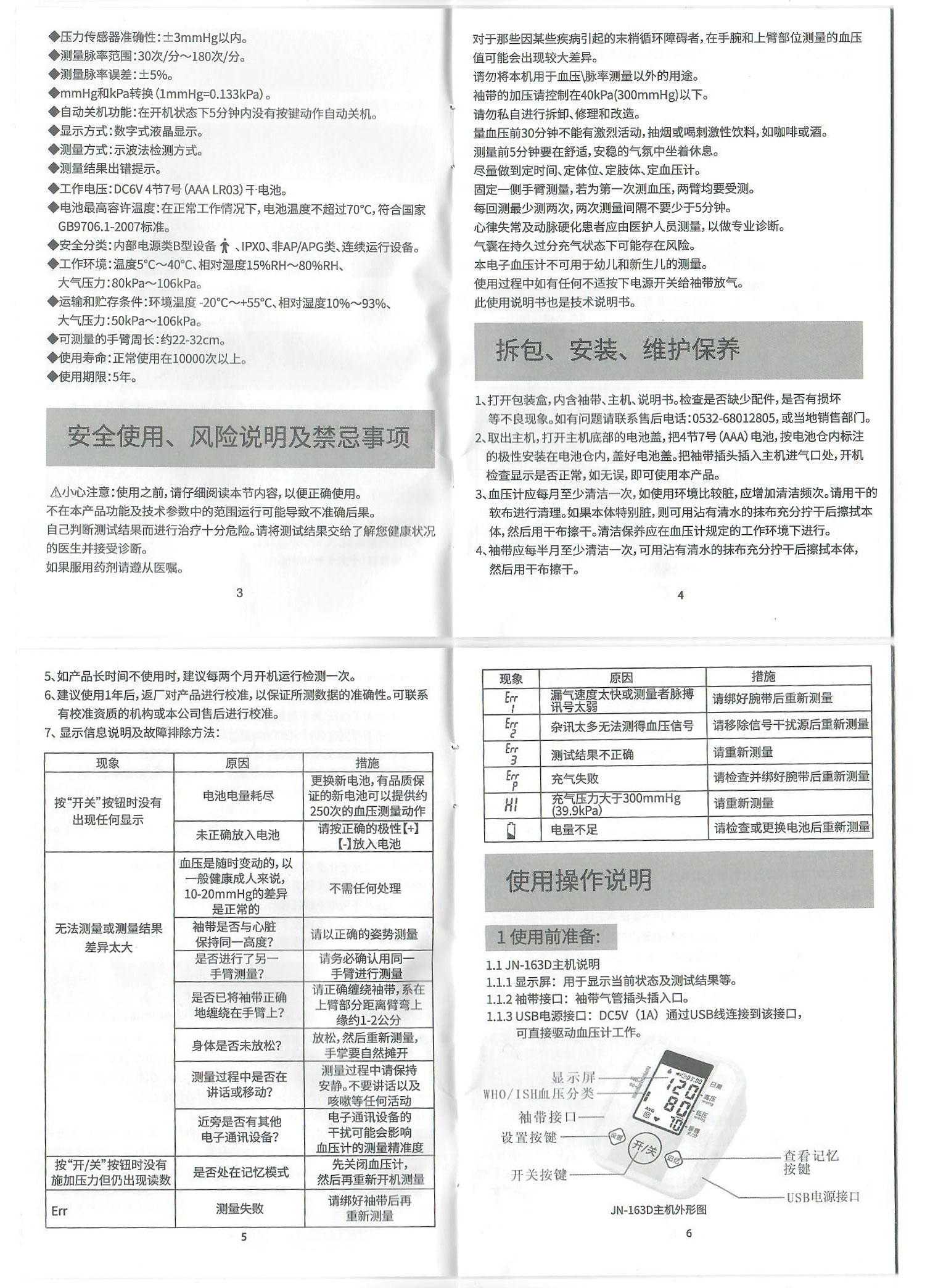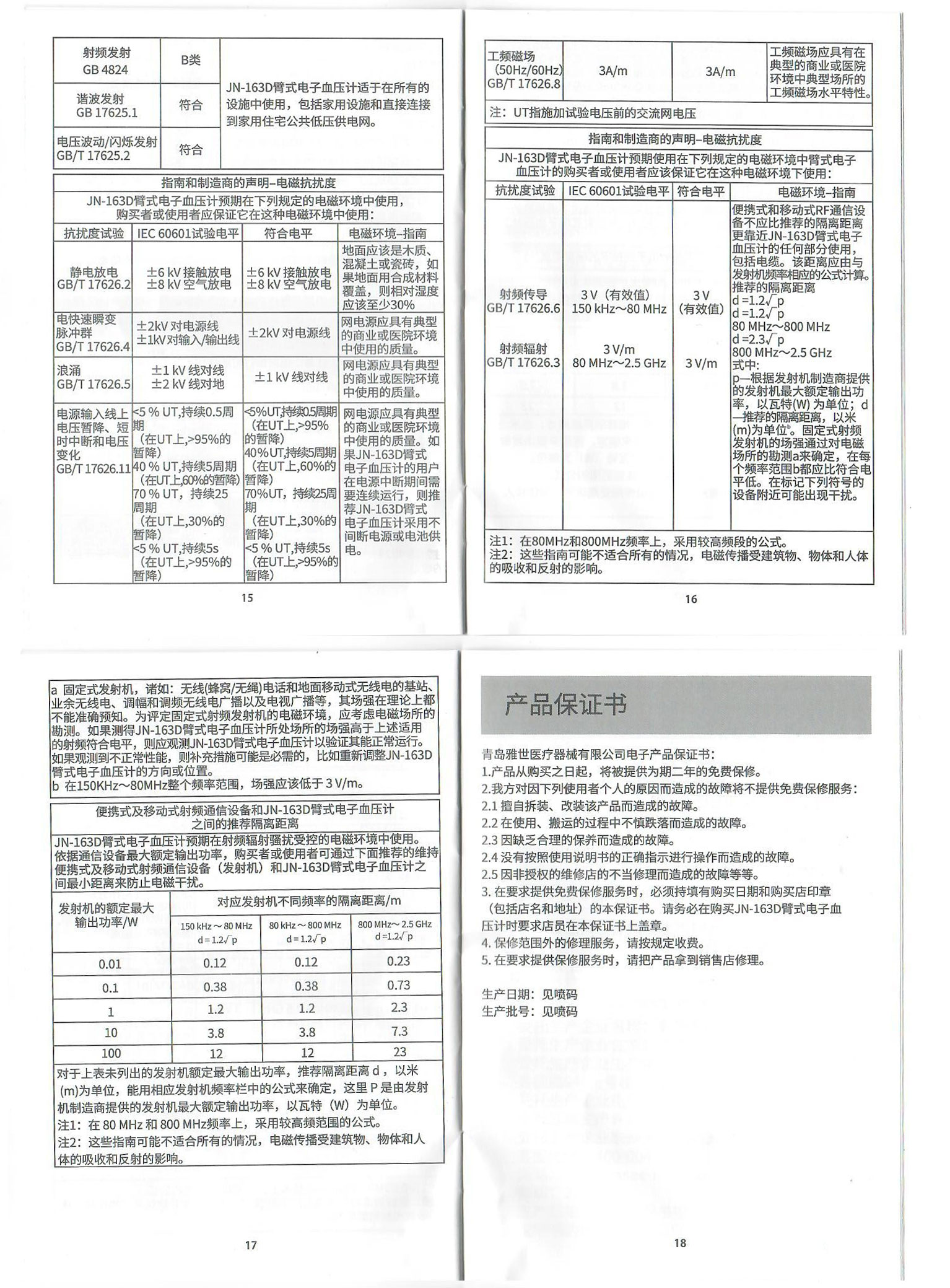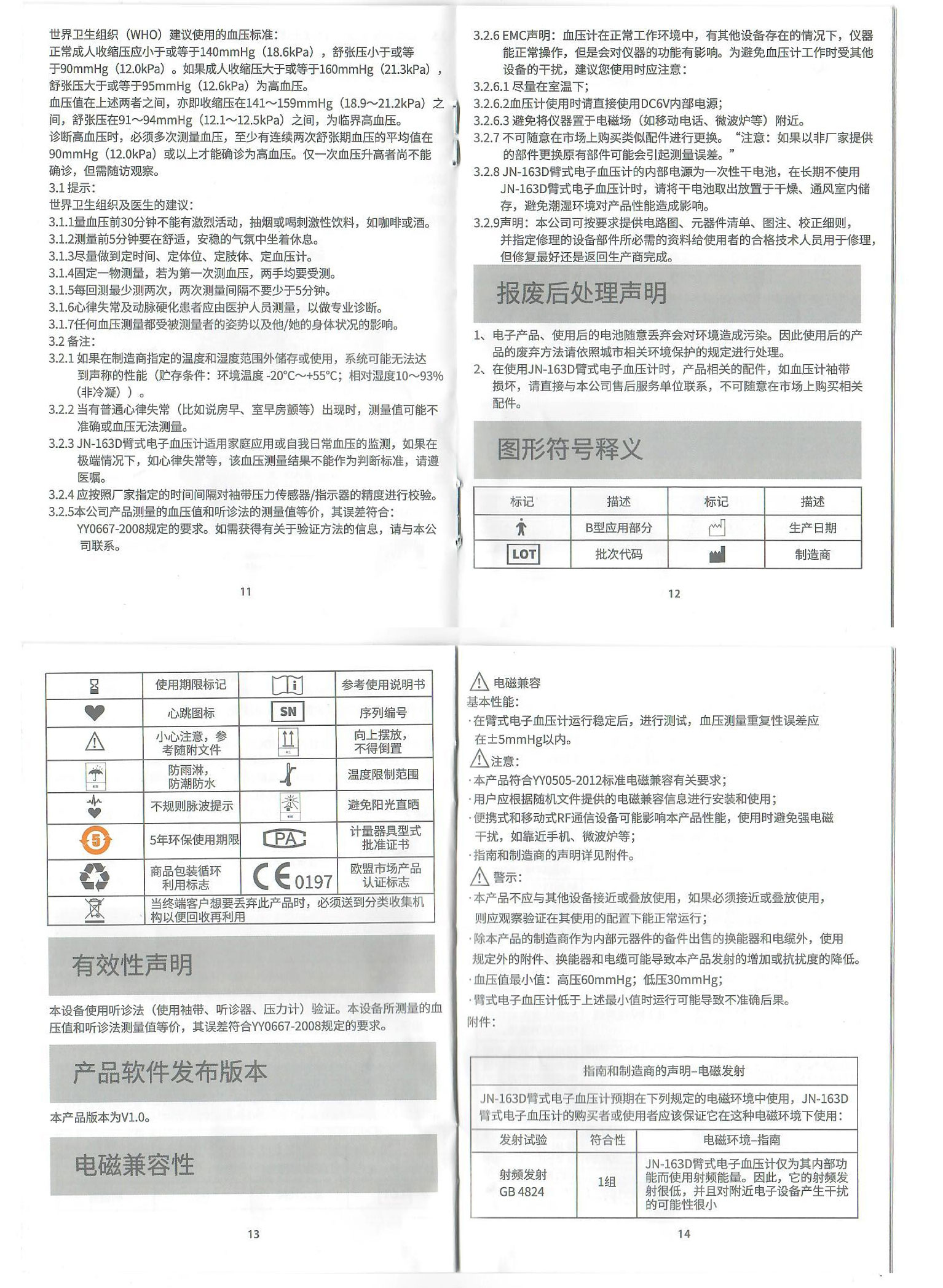 JN-163D 臂式电子血压计使用说明书部分提取文字: