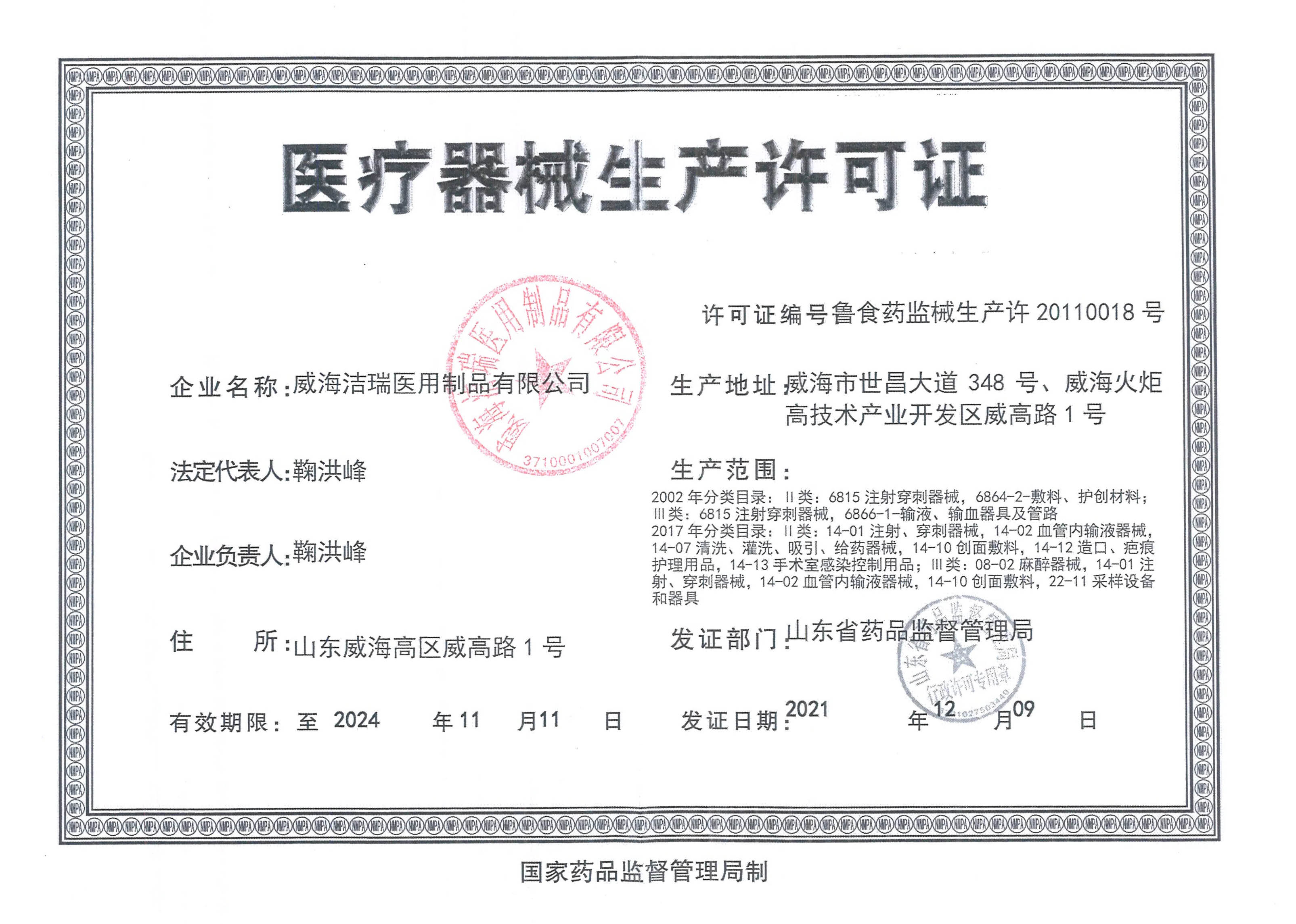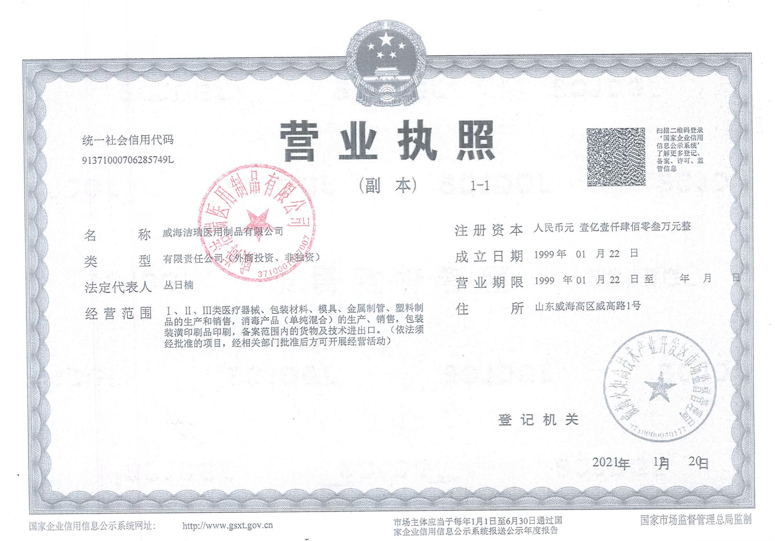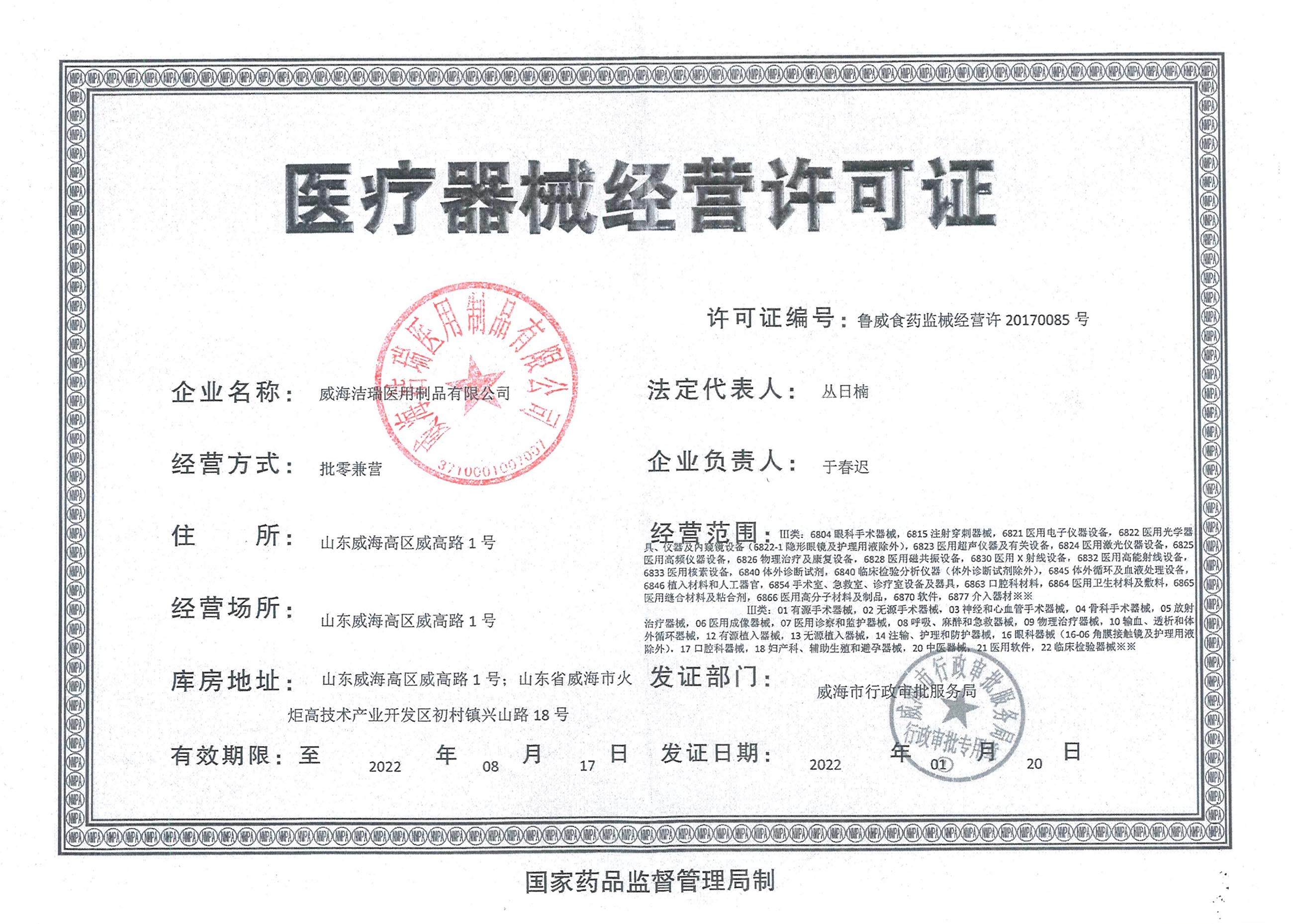 威海洁瑞含银藻酸盐辅料注册证件
